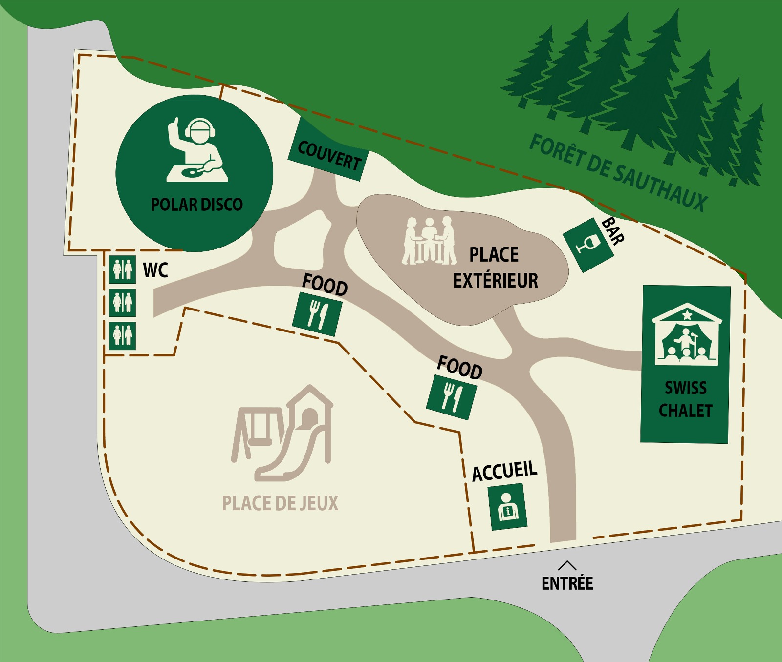 La zone extérieure sera équipée d’espaces conviviaux avec notamment plusieurs chalets proposant une petite restauration, telles les incontournables crêpes et raclettes, un bar d’hiver et ses boissons chaudes réconfortantes, et divers lieux de détente et de rencontre.